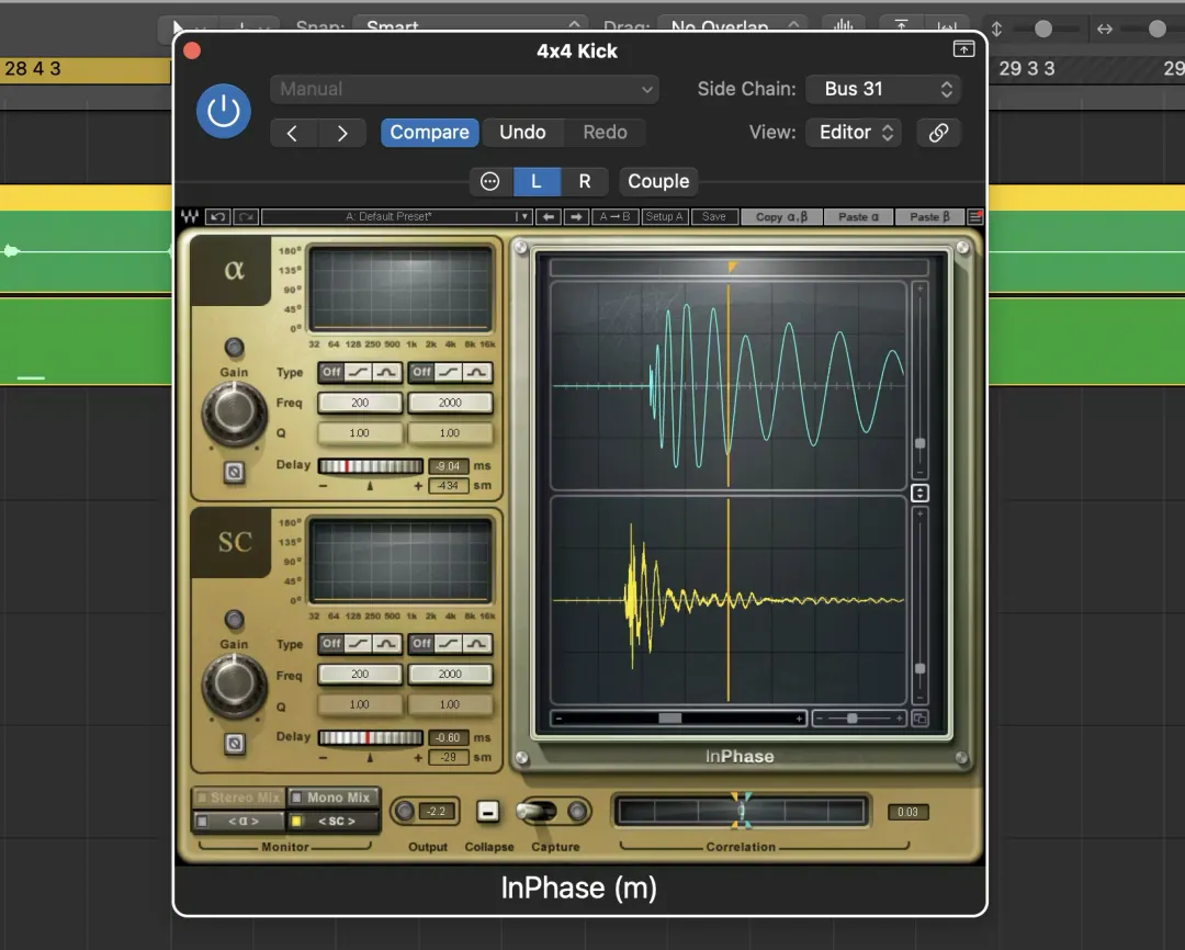 为什么要优先处理相位问题呢?因为如果你的音源存在微小的时间延时,导致轻微的相位偏差,那你插入的每个处理器都会处理这些欠妥的素材。均衡器和压缩器的调整无法弥补相位抵消造成的空洞感。所以优先校正相位,就可以确保两个信号从一开始就扎实有力。