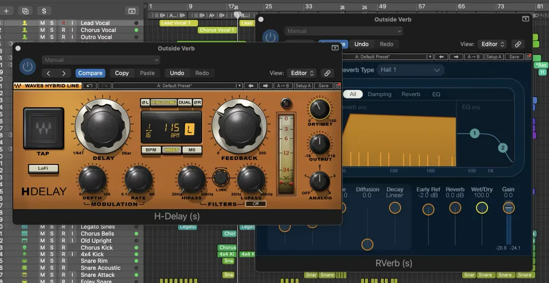 延时和混响是混音中最常用的两种效果器,而且它们经常一起搭配使用。此处的黄金法则是:插件链路中,把延时放在混响之前。