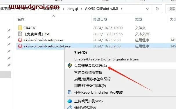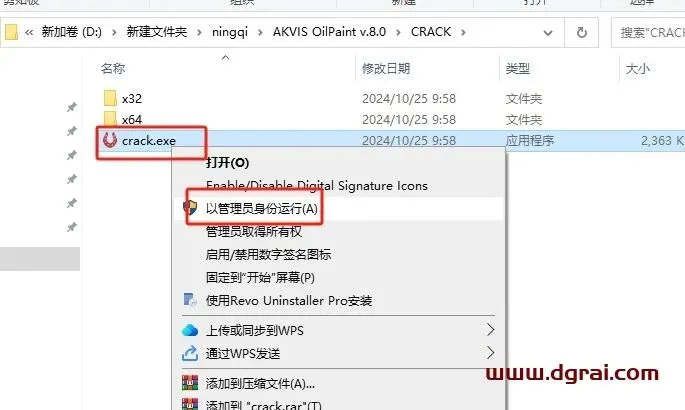 在CRACK文件夹里面选择“crack.exe”鼠标右键以管理员身份运行
