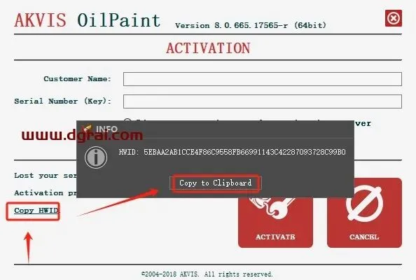 点击【CopyHWID】,弹出对话框,点击【Copy to Clipbord】
