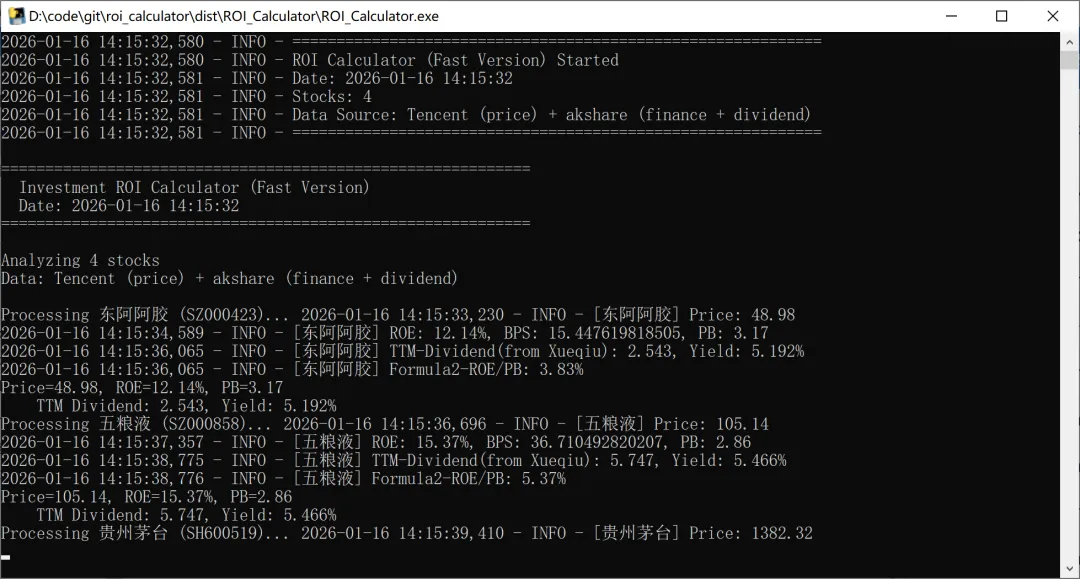 上周我写了一篇散户乙十年回本:五粮液、洋河买入价格测算,引出投资回报率的概念,今天我分享一个刚用python开发的计算实时投资回报率工具。