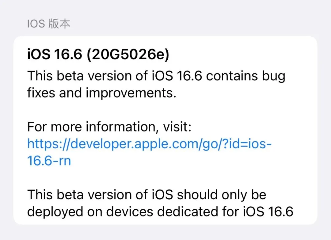 我们主要看看大部分iPhone用户比较关心的iOS16.6Beta版,这次测试版的版本号是20G5026e。