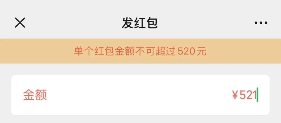 另外,今天是5月20日,微信也为大家准备了「可以发520红包」功能。平时我们用微信只能发最多200元红包,今天可以发最多520元红包。