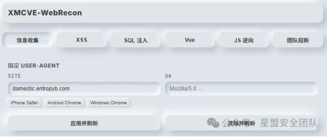 应用并刷新:将 UA 应用于当前站点并刷新页面