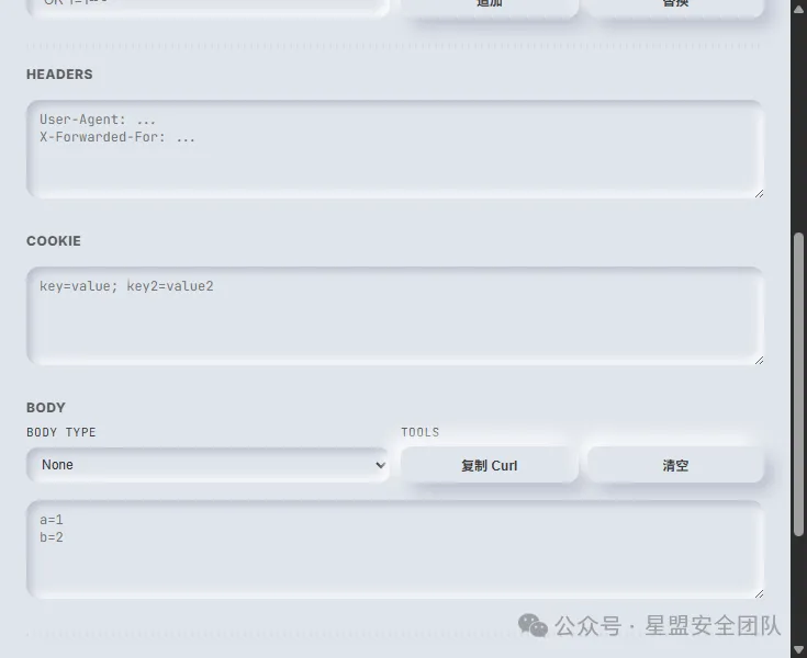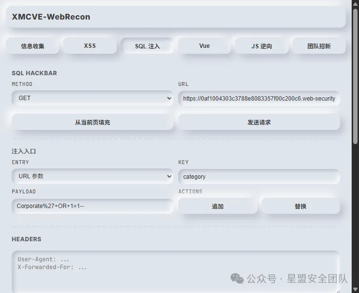 用于快速构造并发送 HTTP 请求,配合“注入入口”做拼接/替换,辅助验证 SQLi 与边界行为