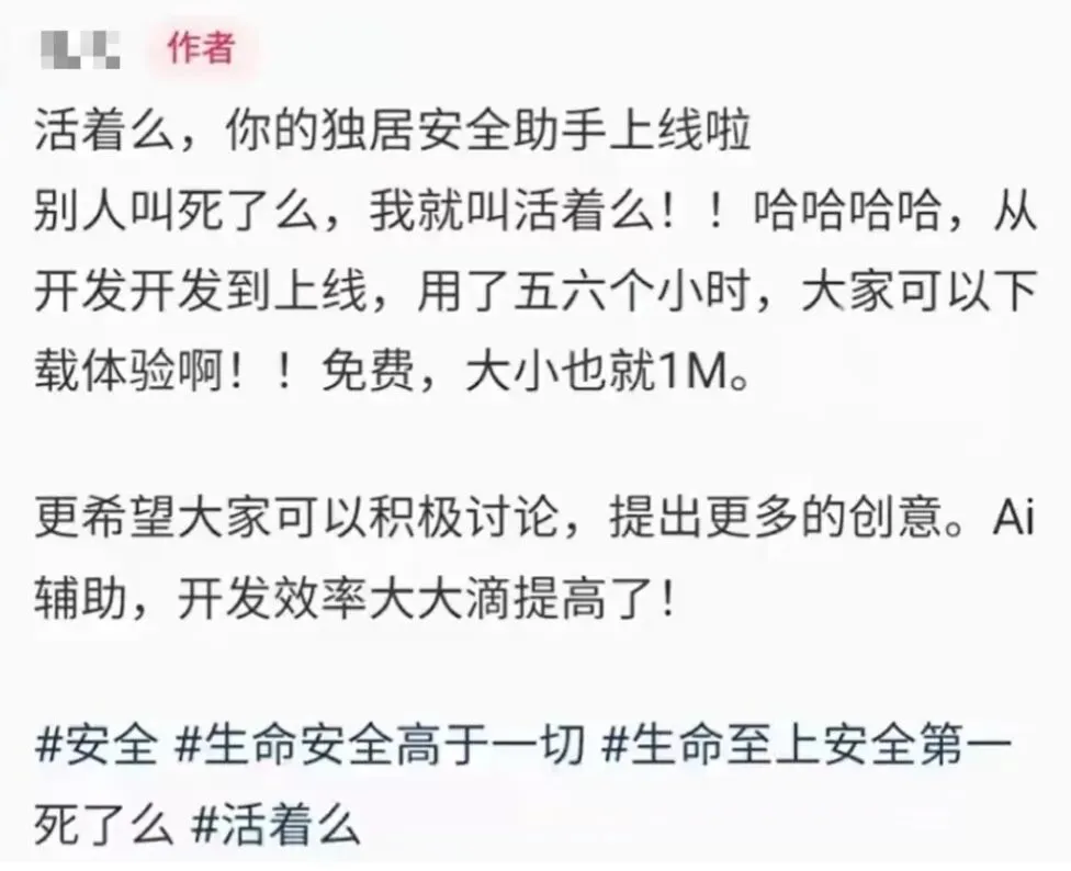↑↑↑版本B,这个免费版本出现是跟风,而且确实借鉴了首发者的创意。这些APP,其实也是鸡肋。组个麻将局也好,到时候三缺一,直接一个电话摇过去, 各种搭子就是你的独居风险控制者, 就算独居也是需要朋友的,培养一些爱好,参加一些活动,认识一些有共同爱好的人,并持续到老吧。