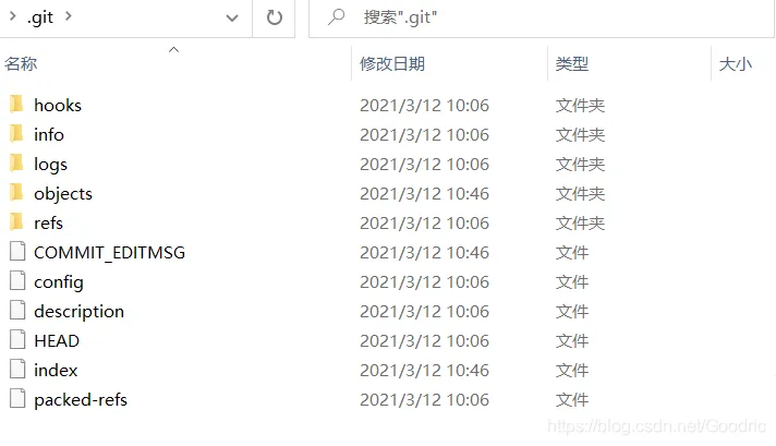 当你运行 git init 时,Git 会在项目目录下创建一个隐藏文件夹:.git。