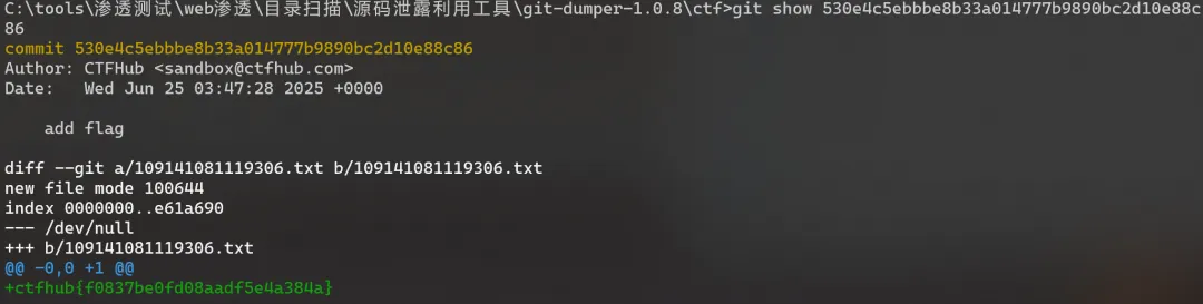 某天,这个项目被上传到 Web 服务器(包括 .git 目录),你用 git-dumper 下载 .git 内容并还原代码库,结果你发现 git log 没看到任何包含 flag 的提交。但你灵机一动,试试: