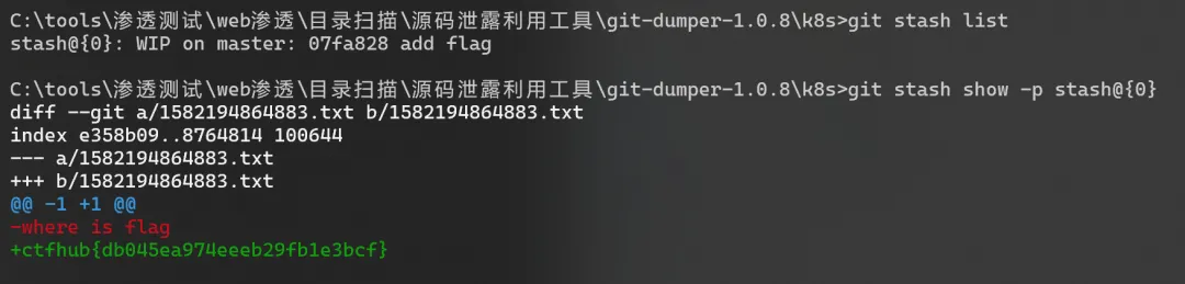 找到了隐藏的 flag,而开发者本以为自己“没提交”就很安全,其实 stash 也被泄露了!
