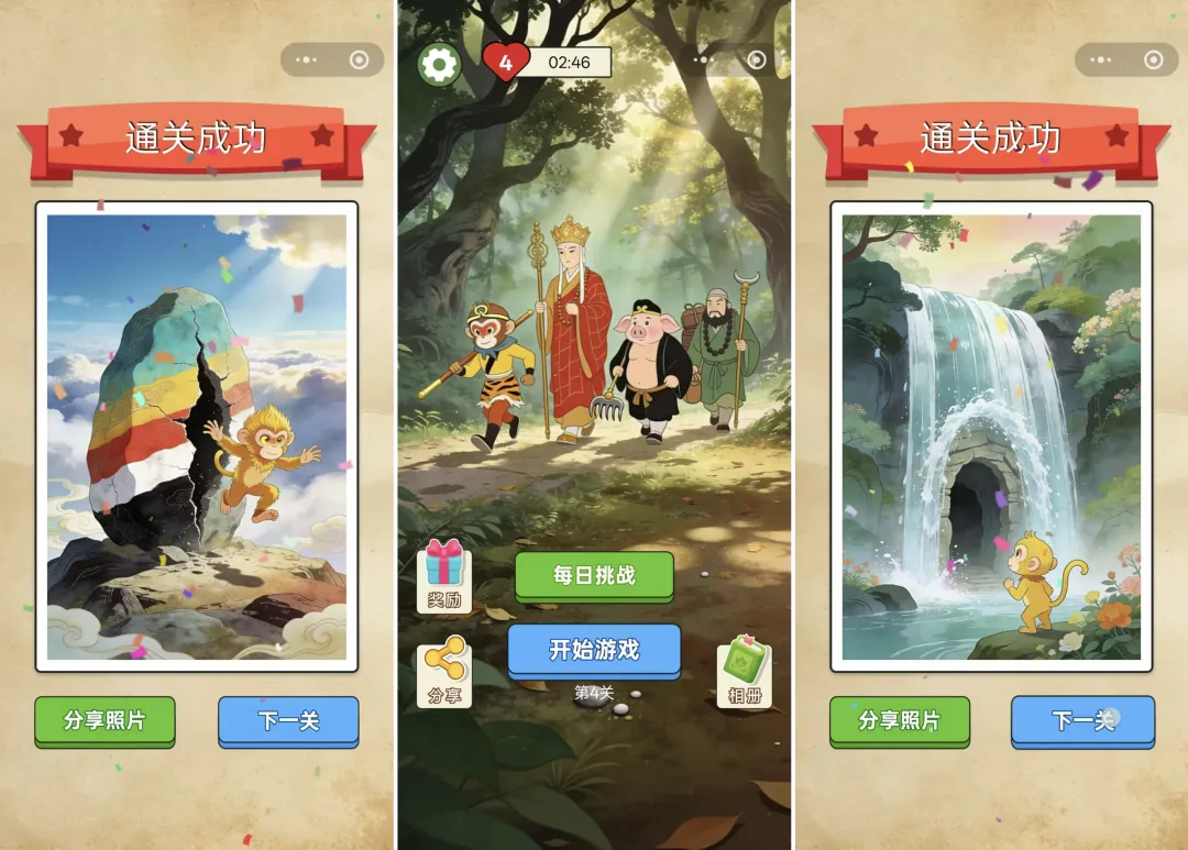 为了搞懂这个逻辑,我研究两天,并联合开发者推出了一款完全对标该玩法的 Cocos Creator 商业源码——《西游拼图》。