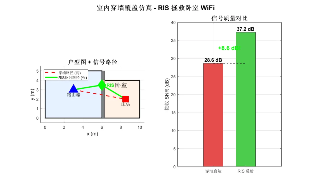 启示:RIS 必须部署在靠近 TX 或 RX 的位置,绝不能放在中间!