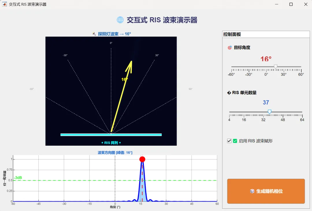 >> cd '交互式 RIS 波束演示器'>> RISBeamDemoApp % 启动 App