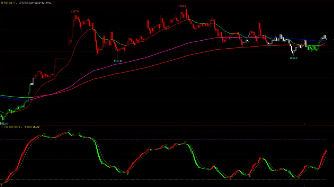 千寻红绿指南针指标幅图:红绿多空柱,多空信号提示