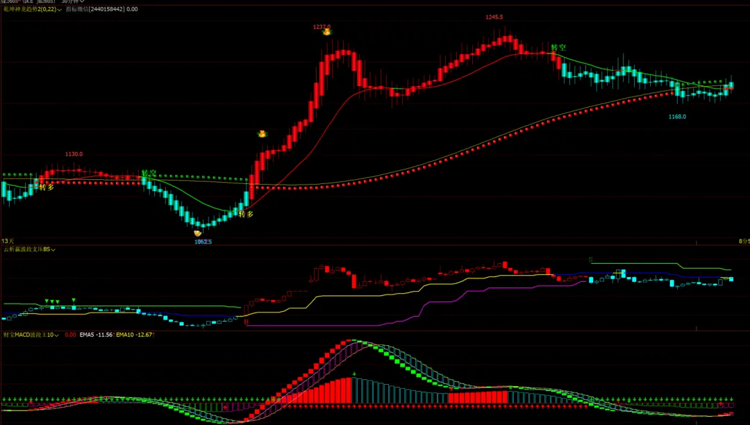 擒龙趋势1号主图:多空变色趋势线,短线变色线,多空震荡K变色