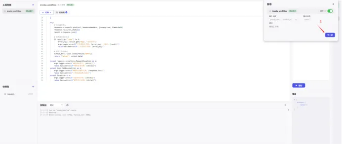 import requestsimport jsonfrom runtime import Argsfrom typings.invoke_workflow.invoke_workflow import Input, Outputdefhandler(args: Args[Input]) -> Output:    # 获取所有输入参数    name = args.input.name    nickname = args.input.nickname    access_token = args.input.access_token    workflow_id = args.input.workflow_id        # 验证必填参数    ifnotall([name, nickname, access_token, workflow_id]):        raise ValueError("所有输入参数(name, nickname, access_token, workflow_id)都是必填项")        # 构造API请求    url = "https://api.coze.cn/v1/workflow/run"    headers = {        "Authorization": f"Bearer {access_token}",        "Content-Type": "application/json"    }    payload = {        "workflow_id": workflow_id,        "parameters": {            "name": name,            "nickname": nickname        }    }        try:        # 发送API请求        response = requests.post(url, headers=headers, json=payload, timeout=30)        response.raise_for_status()        result = response.json()                # 检查API响应状态        if result.get("code") != 0:            error_msg = result.get("msg", "未知错误")            args.logger.error(f"工作流执行失败: {error_msg} | 响应: {result}")            raise RuntimeError(f"工作流执行失败: {error_msg}")                # 解析工作流输出        output_data = json.loads(result["data"])        return {"output": output_data}        except requests.exceptions.RequestException as e:        args.logger.error(f"API请求异常: {str(e)}")        raise RuntimeError(f"网络请求失败: {str(e)}")    except json.JSONDecodeError as e:        args.logger.error(f"API响应解析失败: {response.text}")        raise RuntimeError("工作流响应格式错误")    except Exception as e:        args.logger.error(f"未处理的异常: {str(e)}")        raise RuntimeError(f"插件执行出错: {str(e)}")