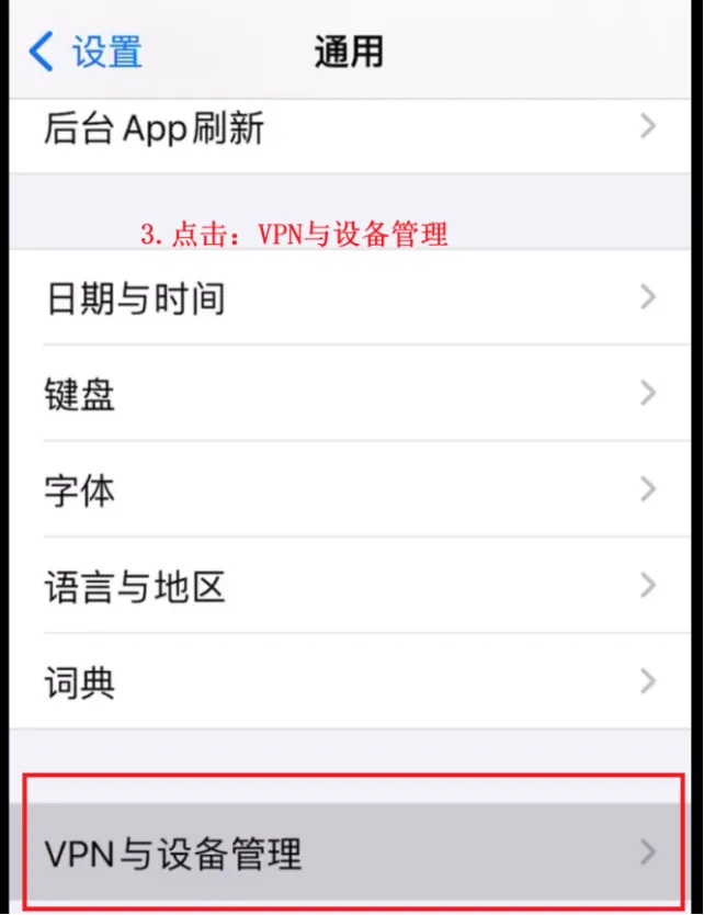 3 点击“VPN与设备管理”