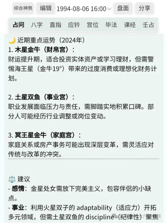 耳机丢了?感情不顺?工作纠结?选六壬模式,输入问题,不到20秒后AI就会根据卦象给你指条明路!