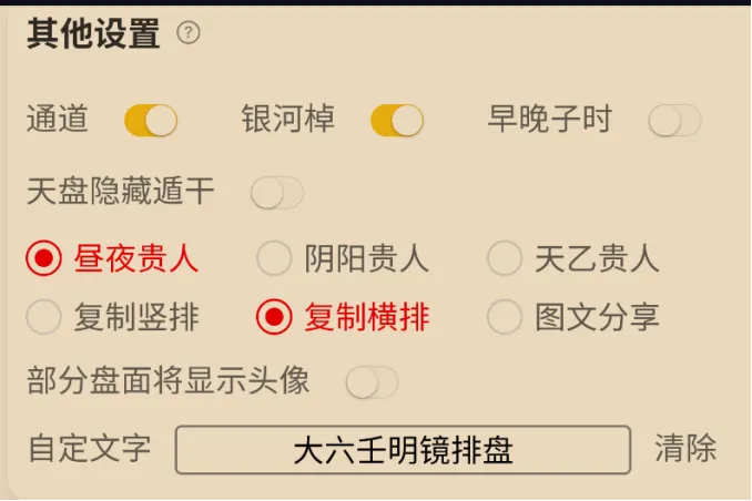 注意:必须点击盘面右上角三个点的设置,随意改一个设置,盘面切换和神煞切换才能被激活。否则,点击盘面的切换则不生效。