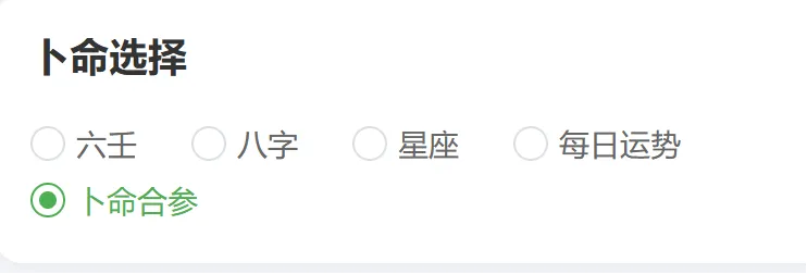 卜命选择,勾选卜命合参,将大六壬和八字命理完美融合起来,发挥各自优势特长,从不同的角度来解决卦主的问题,六壬侧重分析事件细节,八字侧重分析运势方向,起到1+1>2的效果。双剑合璧,威力无穷。