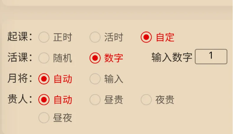 2.活时起课:支持随机数、自选数字、自选地支起课。贵人自动以活时为准。