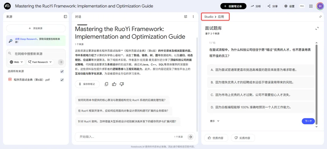 我试着把那本厚厚的《程序员面试金典 (第6版).pdf》直接投喂给它。 你以为它只是做个总结?太天真了!它具备以下这些能力: