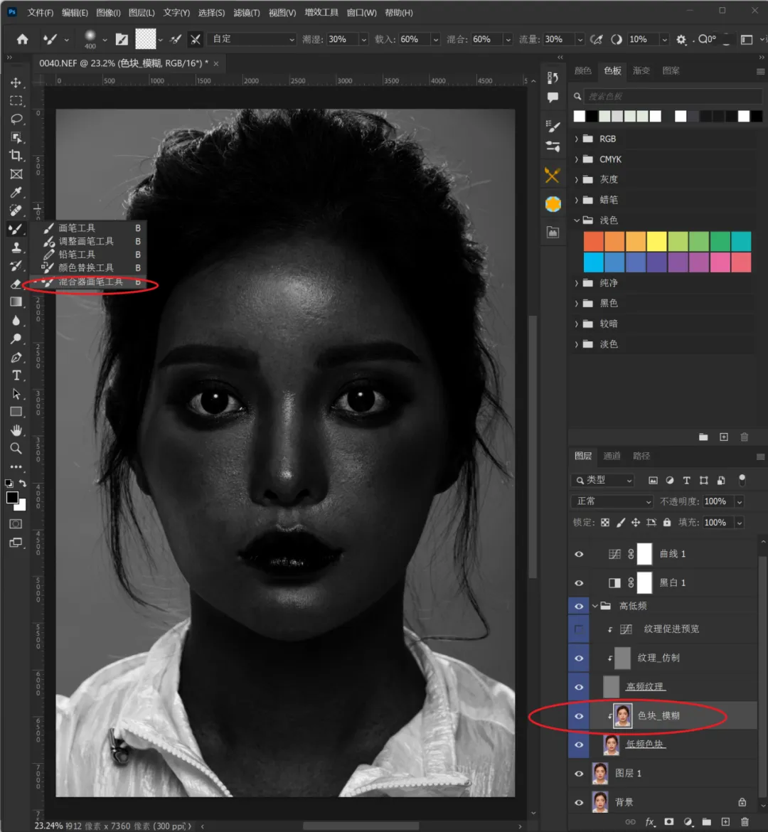 选择低频层,选择混合器画笔工具。