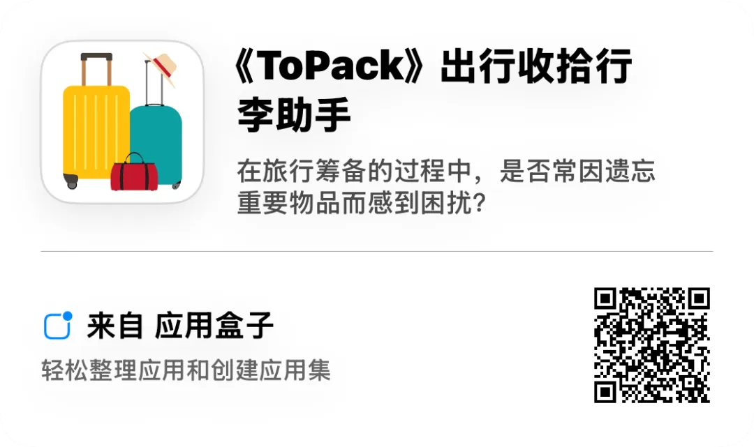 应用介绍:在旅行筹备的过程中,是否常因遗忘重要物品而感到困扰?每次工干或出行前,总会有一些焦虑感!如果能够将你的行李收拾好,相信压力会大减! 《ToPack》 能确保您能够轻松、愉快地开始每一次旅程。 《ToPack》 提供了许多贴心的功能,让您可以自订类别和项目,将旅行清单完全个人化,满足您的独特需求。更为方便的是,这款应用程式支援CSV和其他格式的汇入与汇出功能,让您的清单管理更加灵活多变