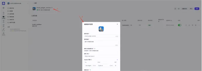 配置插件头像、名称、描述、创建方式、插件URL、Header列表和授权方式。