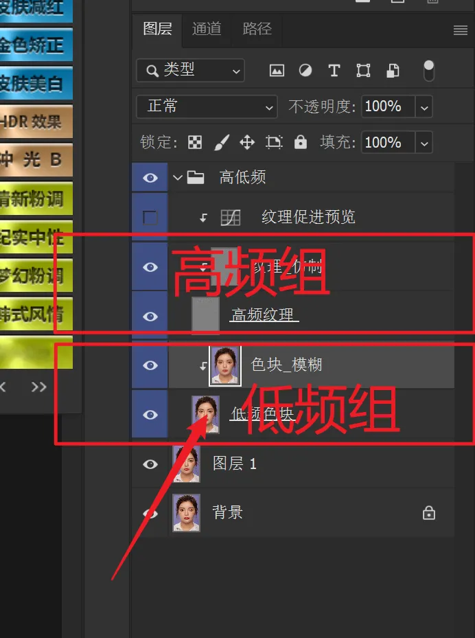 DR5.0会自动创建高低频图层组。这个图层组有两个部分组成,分别是低频组和高频组。