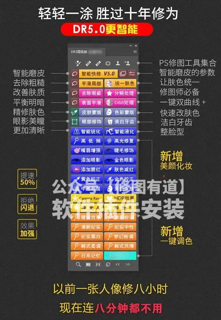 如果你还在为Ps磨皮复杂而烦恼,不妨试试DR5.0插件,相信它会给你带来意想不到的惊喜。