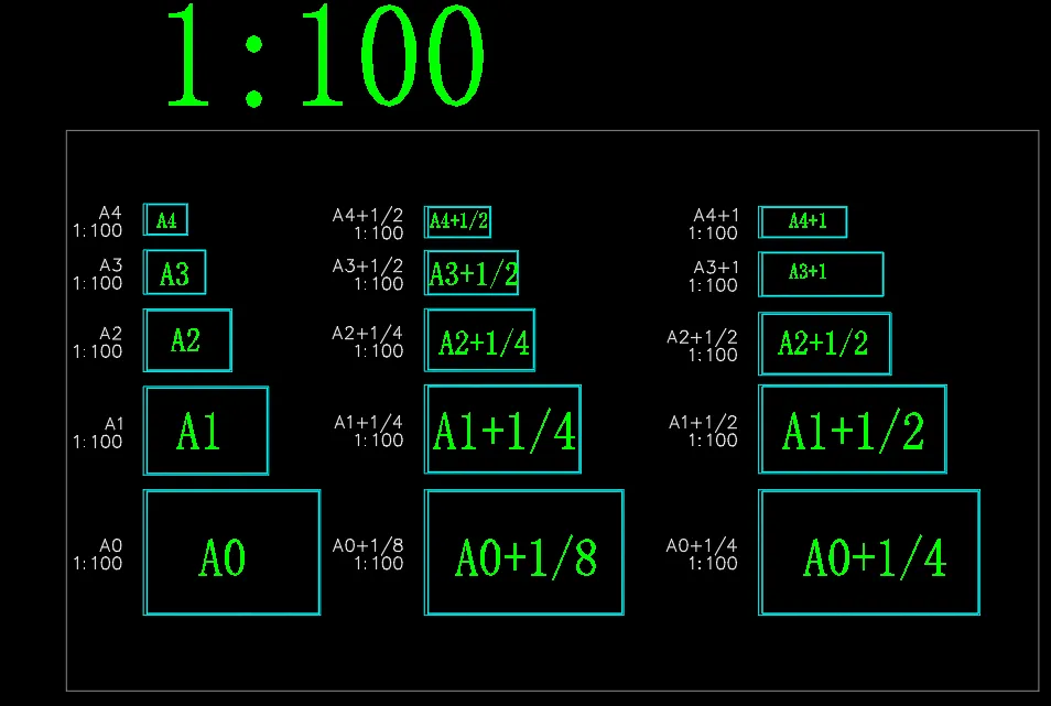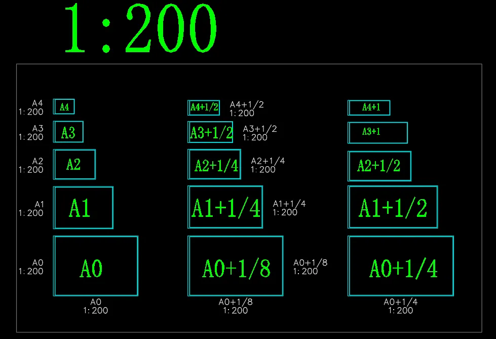 不仅支持 A0/A1/A2/A3/A4 标准尺寸,还能自动识别 1/8、1/4、1/2、3/4 等所有加长比例,再也不用手动套图框了。
