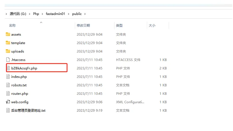 public目录下有一个很奇怪的php就是后台登录地址啦
