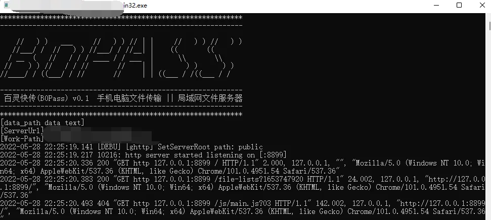 下面是使用方法,首先打开百鸟快传的电脑客户端,然后会启动一个命令行窗口这个窗口不要关闭。