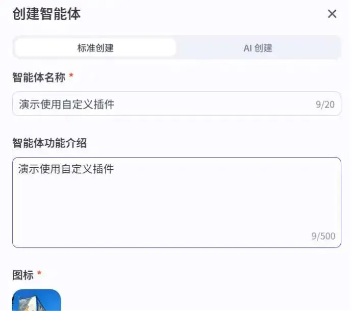 配置插件头像、名称、描述、创建方式和代码运行环境