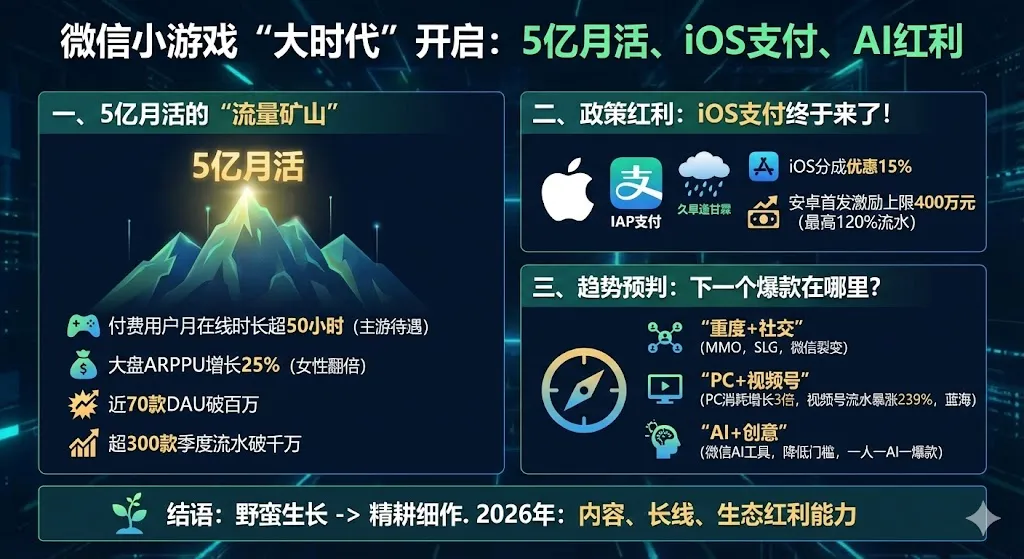 总结:2026年的游戏市场,App端的“马太效应”已成定局,但小游戏(尤其是PC端)和AI赛道,正在为中小厂商和敏锐的大厂提供新的超车机会。