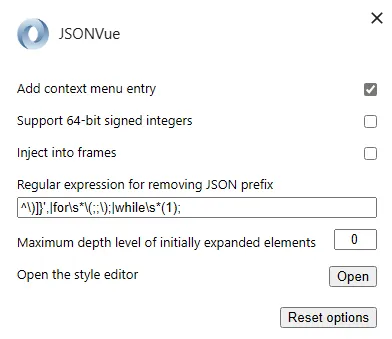 打开JSONVue扩展插件选项。
