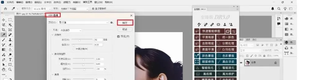 4、鼠标左键单击“是”,弹出“HDR色调”面板;然后,单击“确定”。如:图4。
