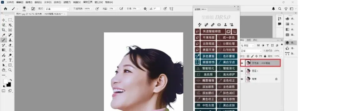 6、小结:如何在PS插件至臻版dR5.0中使用HDR效果修饰照片?鼠标右键单击“照片1”,打开方式,选择AdobePhotoshop2026,打开“照片1”。按Ctrl+J键,复制图层1。鼠标左键单击选择“窗口,扩展功能,至臻版DR5.0”;鼠标左键单击“至臻版DR5.0”,打开“至臻版DR5.0”编辑面板,鼠标左键单击“HDR效果”,弹出脚本警告窗口;然后,鼠标左键单击“是”。弹出“HDR色调”面板;然后,单击“确定”。