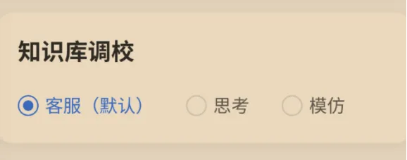 知识库大模型选择豆包效果更好,知识库调教选择客服(默认)即可。“思考”会展示思考过程,并进行一定程度的扩展;“模仿”则是模仿原文进行回答。