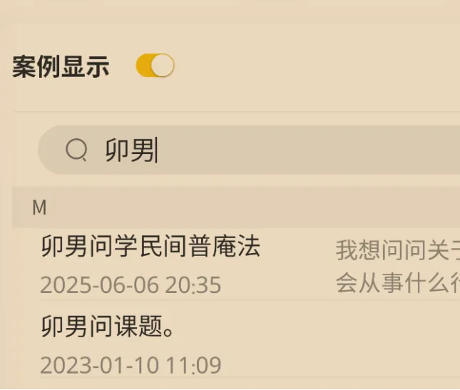 7.点击案例显示后,案例默认按照首字母顺序排列。查询关键词可以搜索到对应案例。