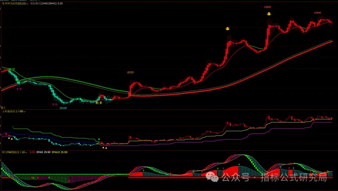 财宝macd波段王幅图:macd改良版,多空趋势,反转柱