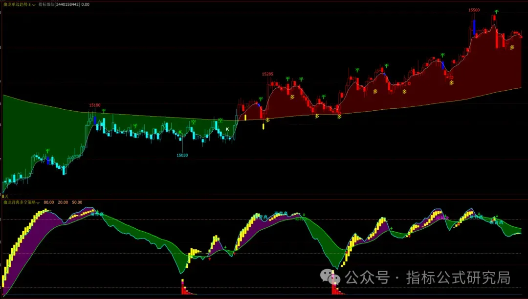乾坤神龙趋势2主图:趋势信号,短线波段信号,多空K变色,开多开空平