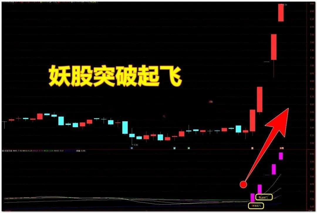 形态 :股价在60日线或120日线附近长时间横盘,成交量像芝麻点一样小。信号 :突然某天放量拉升,收出涨停,且指标出现“妖股起飞”黄色信号。操作 :这就是典型的“旱地拔葱”。只要第二天高开不破分时均线,大概率还有连板。这是做波段的最佳上车点。