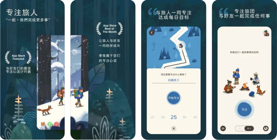 这是一款提升专注力的工具,以旅人行程的方式来进行专注~