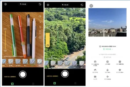 它支持自动记录拍摄时的时间、地点、天气、海拔、经纬度、设备信息、光圈、焦距、快门、感光度、滤镜、温度、湿度、风速、能见度。