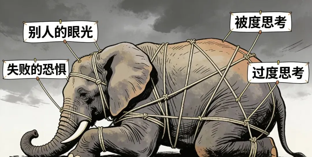 这些看不见的情绪内耗,比身体疲惫更伤人。它让我们在犹豫中浪费时间,在比较中丧失自信,在焦虑中透支心力,最后活得像一只被细绳捆住的大象,明明有挣脱的力气,却被自己的思绪牢牢束缚。
