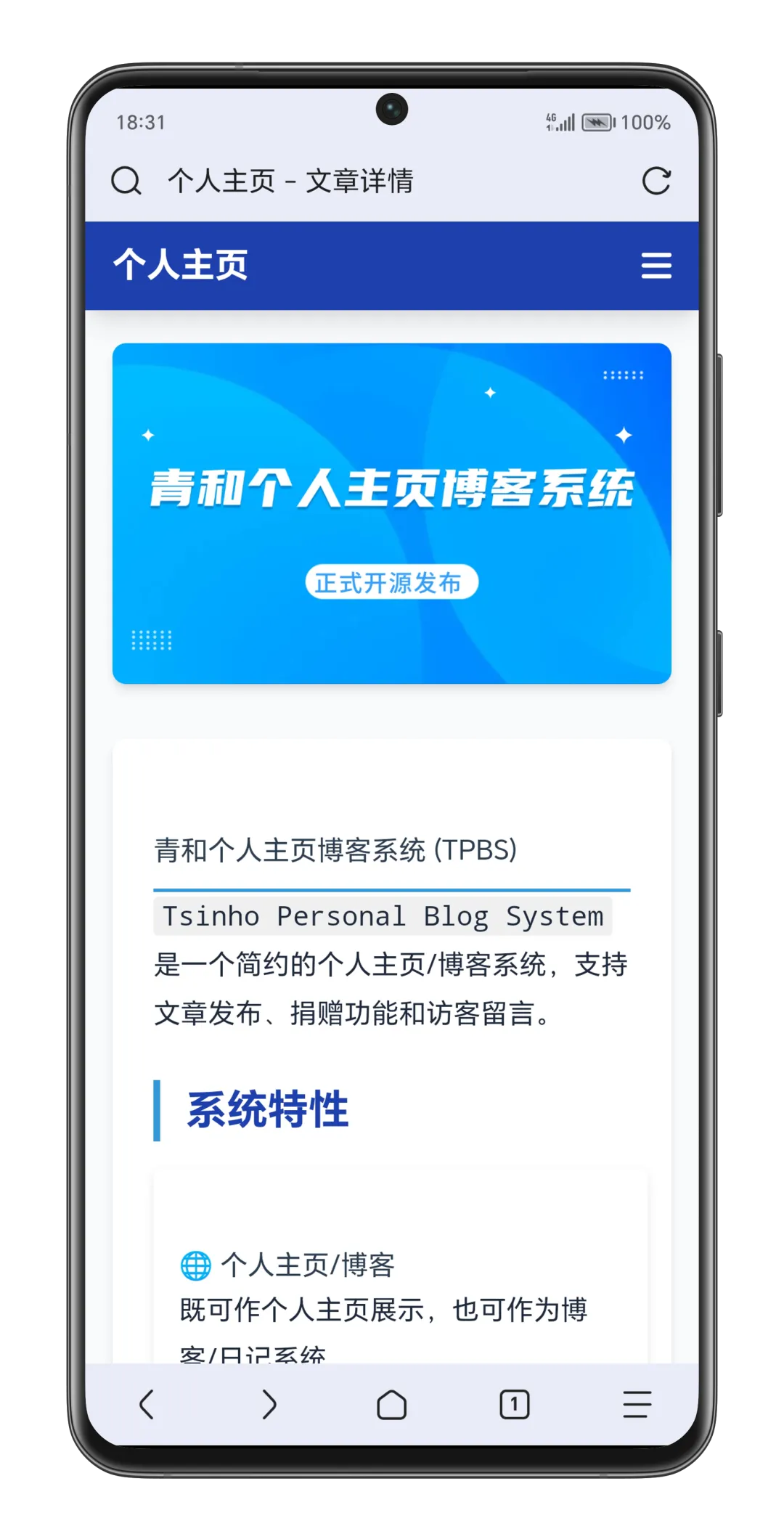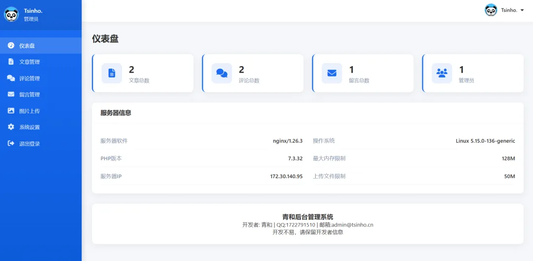 TPBS(Tsinho Personal Blog System)青和个人博客系统前后端开源源码