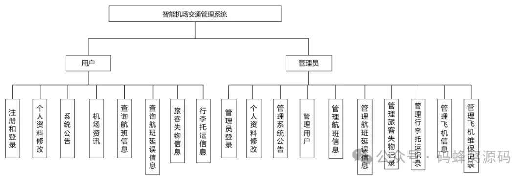 智能机场交通管理系统包括用户注册、用户登录、系统公告、机场资讯、查询航班信息、航班延误信息、旅客失物登记、行李托运管理、飞机维保记录、违禁品记录等模块。整个系统的功能模块设计如图: