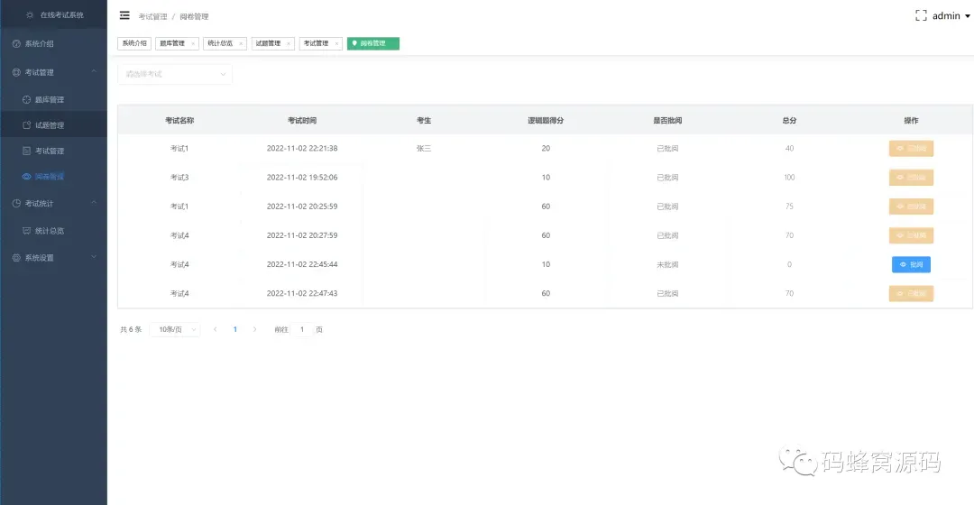 管理员和教师登录系统后可以查看所有学生的考试成绩,和分段成绩查询。